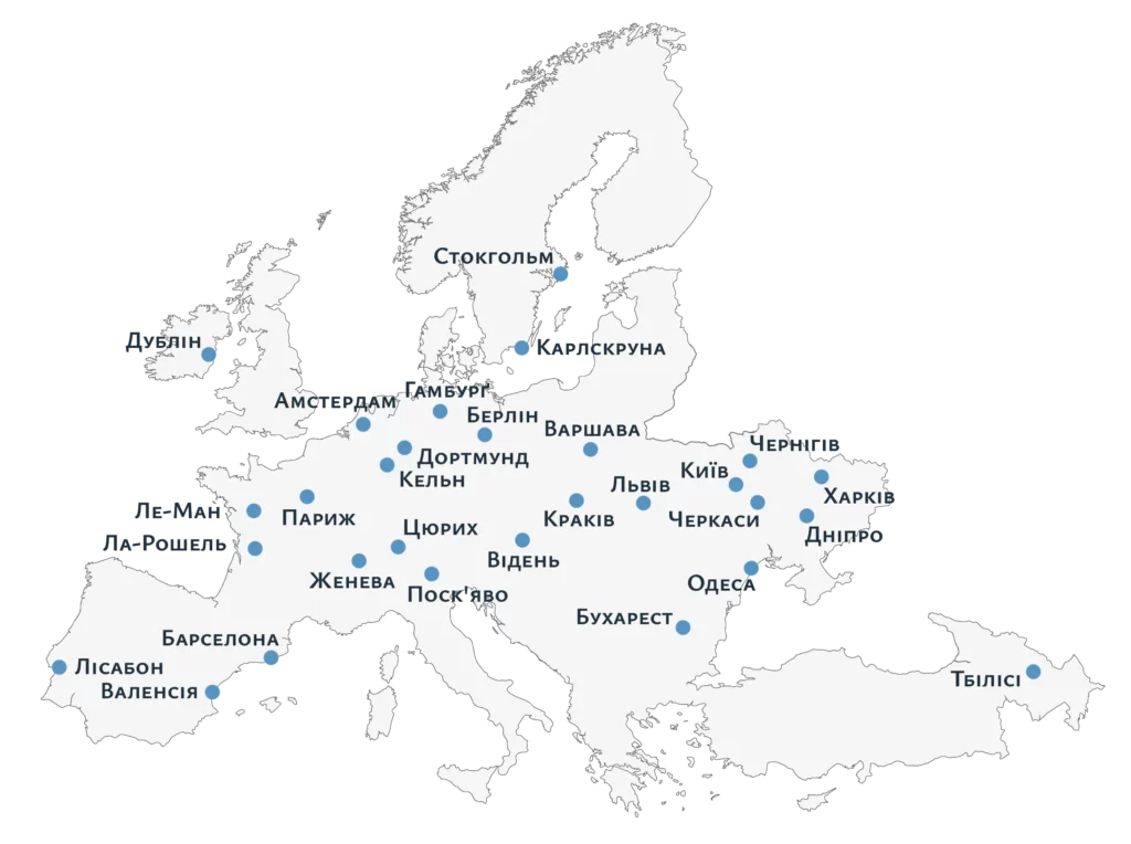 команда Дмитра Данилова: Київ, Валенсія, Цюрих, Поск'яво, Барселона, Дортмунд, Інсбрук, Тбілісі, Бат Ям
