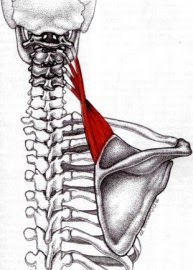 В состоянии гипертонуса будет находиться мышца, поднимающая лопатку. Она начинается от первых 4 шейных позвонков.