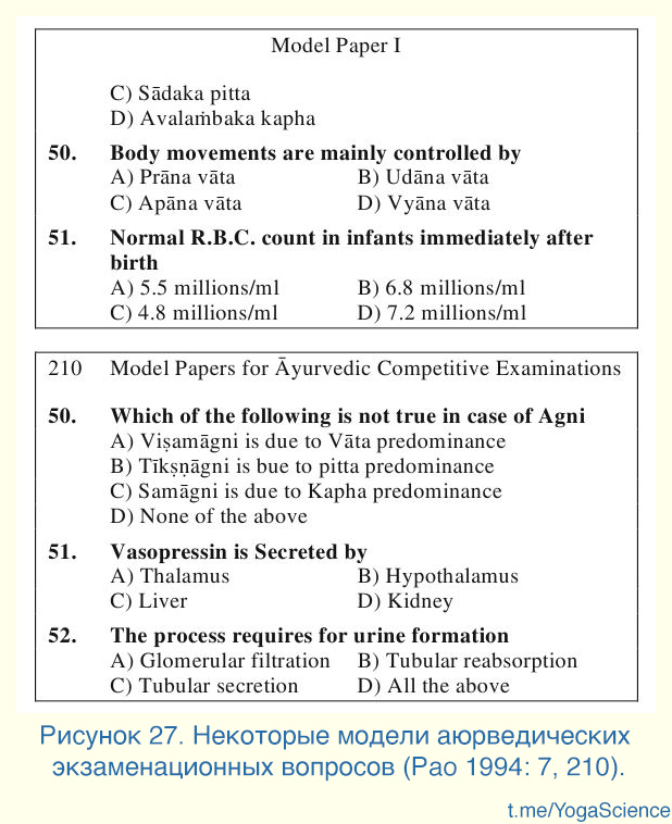 Рао, Г. Прабхакара (Rao, G. Prabhakara), 1994. «Типовые модели для аюрведийских конкурсных экзаменов (Model Papers for Ayurvedic Competitive Examinations)», г.Варанаси: Издательство Chaukhambha Sanskrit Bhavan.