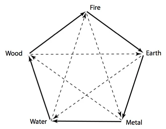 У кожному комплексі присутні блоки, які пов’язані з першоелементами або стихіями, принаймні з п’ятьма. Так наведене вище розминання відповідає стихії Дерева, вона виводить організм людини з іньського, пасивного, сонного стану, та розганяє кров тощо.