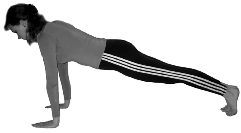 Видихаючи, підняти таз максимально нагору, не змінюючи положення рук та ніг. Як результат тіло в положенні, що схоже на арки. Руки та спина мають складати одну пряму лінію. Ноги прямі.