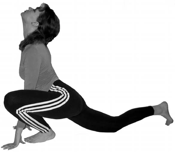 Вдихаючи повітря, перемістіть праву (жінкам ліву) ногу назад (по підлозі) наскільки це можливо. Одночасно зігніть ліву ногу в коліні, зберігаючи ліву ступню на тому ж місці (простіше кажучи, зробіть глибокий випад лівим коліном уперед), одночасно прогинаючись у спині від верхніх хребців до нижніх (як у бгуджангасані). Долоні торкаються підлоги, руки (у ліктях) прямі.